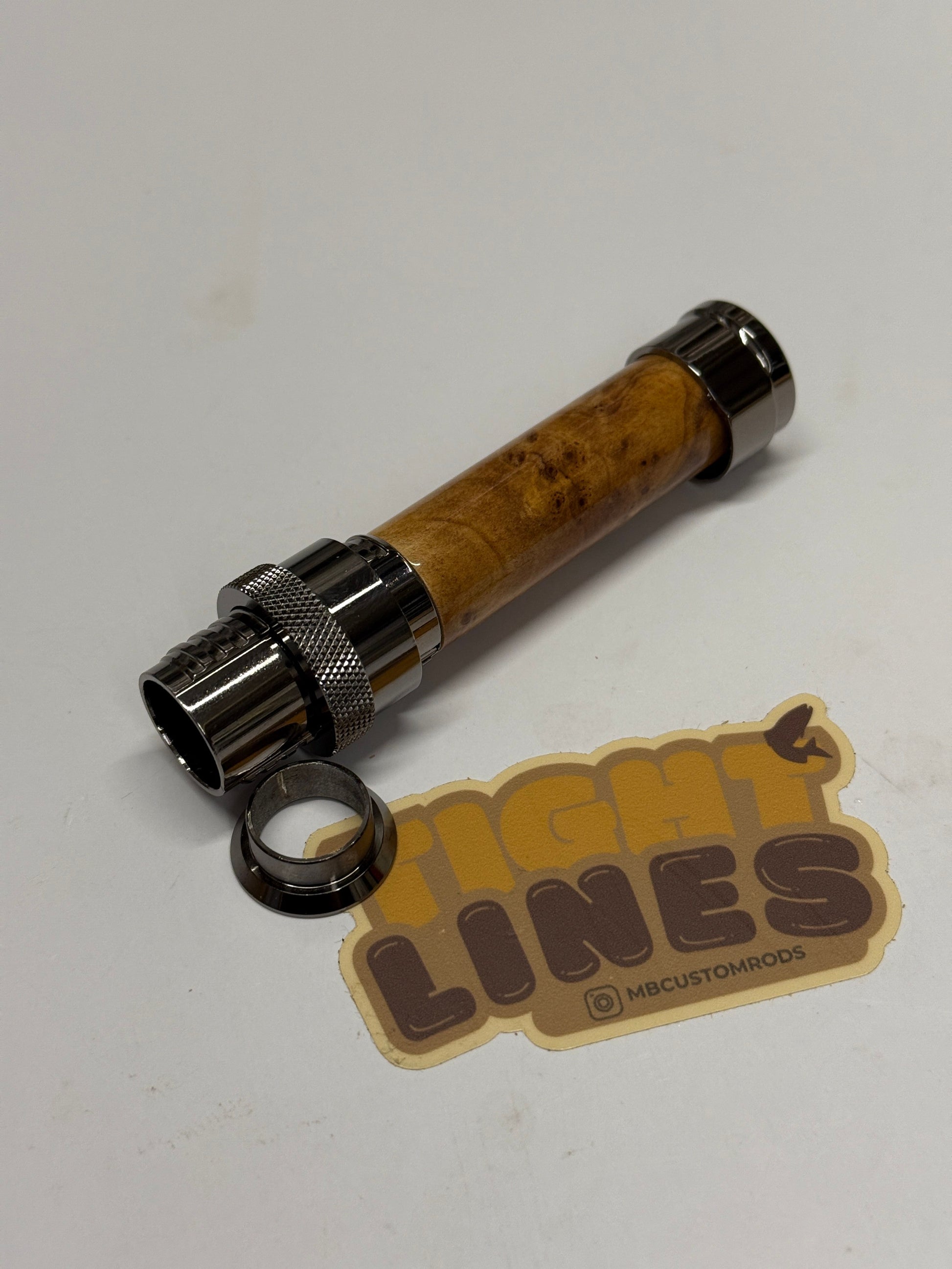 The classic Garrisson-style down-locking reel seat is made of Dark Nickel Silver platinum-plated 6061 aluminum and looks very nice on classic fiberglass rods as well as on Carbon rods. A modern classic.