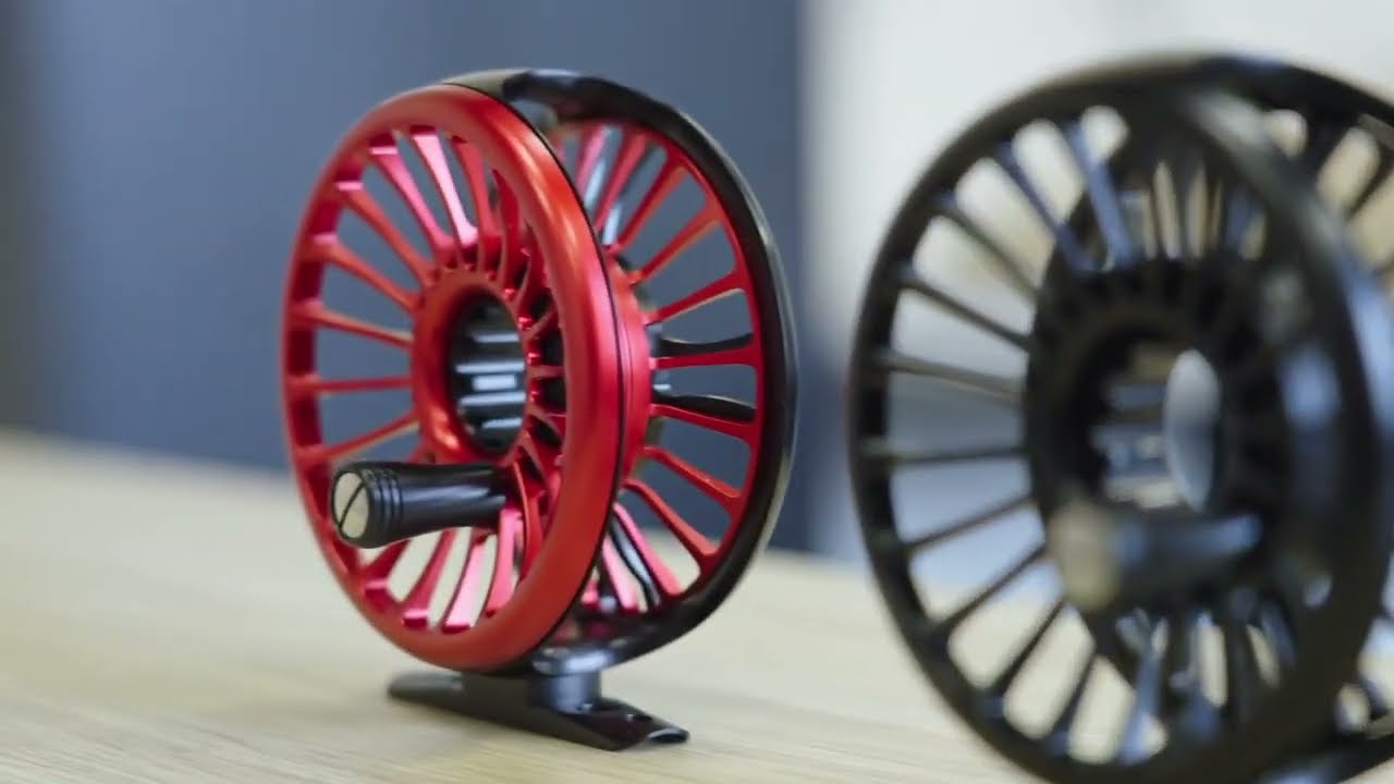 Available in satin black frame and spool, red spool, blue spool, and silver spool. Water-resistant, sealed bearings. Spare clicker in the handle. Includes premium eco-friendly X-pac reel bag.