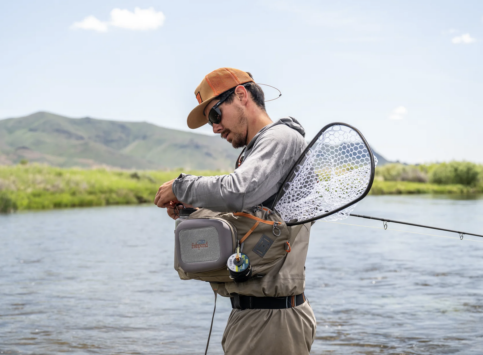 Inspired by the wild brown trout that inhabit the canyons of the West, the Nomad Canyon landing net is engineered to perform in remote and challenging environments. It's the ideal choice for anglers who don't want to compromise. Its long handle allows it to be securely inserted into the net slot of slings, fanny packs, and backpacks, while maintaining a low profile for all-day backcountry trips. The flared handle not only provides a secure grip but also minimizes accidental slippage when it matters most. Like all Nomad nets, the Canyon is constructed from a combination of carbon fiber and fiberglass, resulting in an extremely lightweight and durable platform. Its remarkable strength ensures you can confidently reel in that wily 20-inch trout when the opportunity arises.