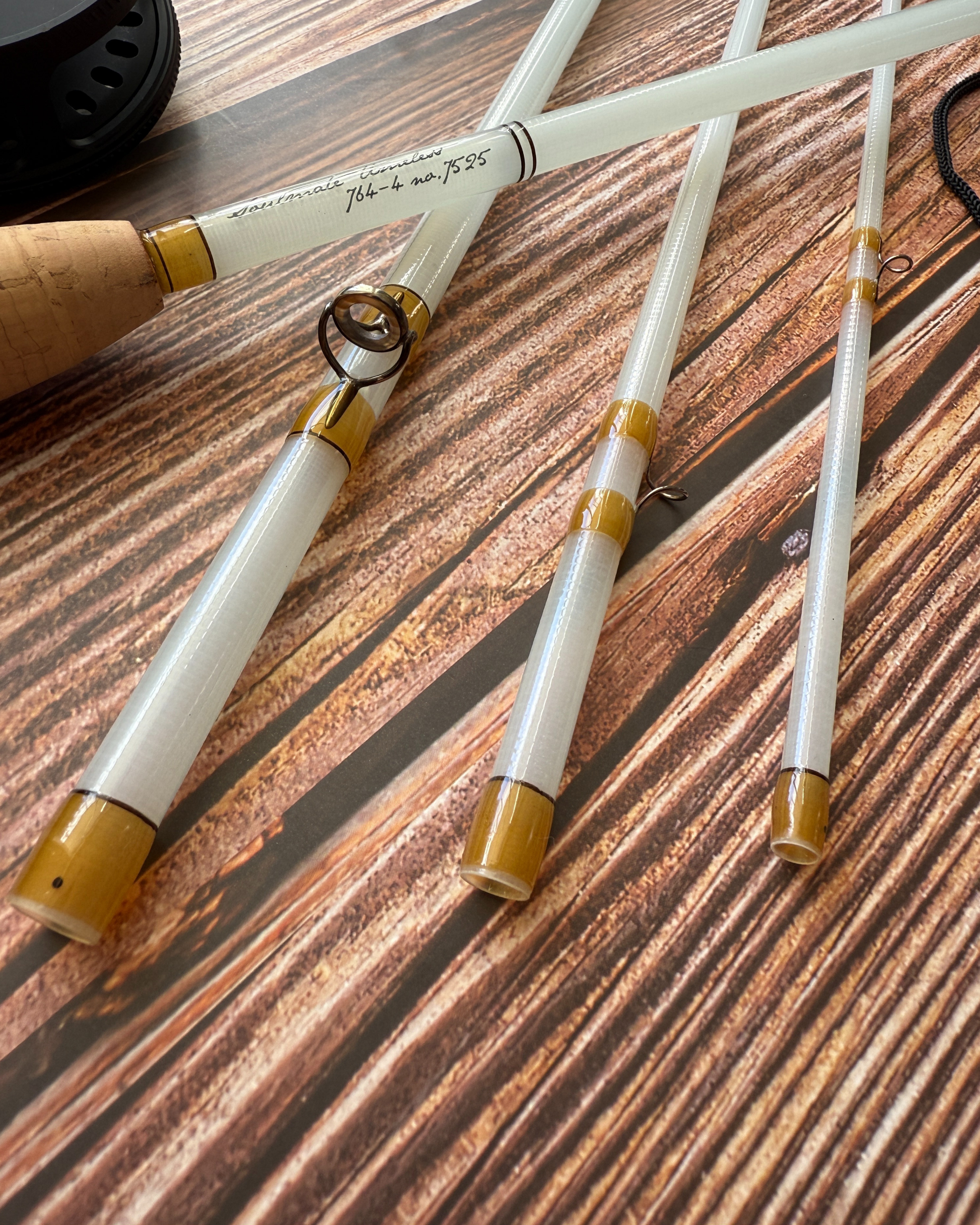 Exclusiver Aufbau des Soulmate Essence S-Glas Blanks 764 mit premium Komponenten. Inkl. Futteral und Fiberglass Transportrohr.