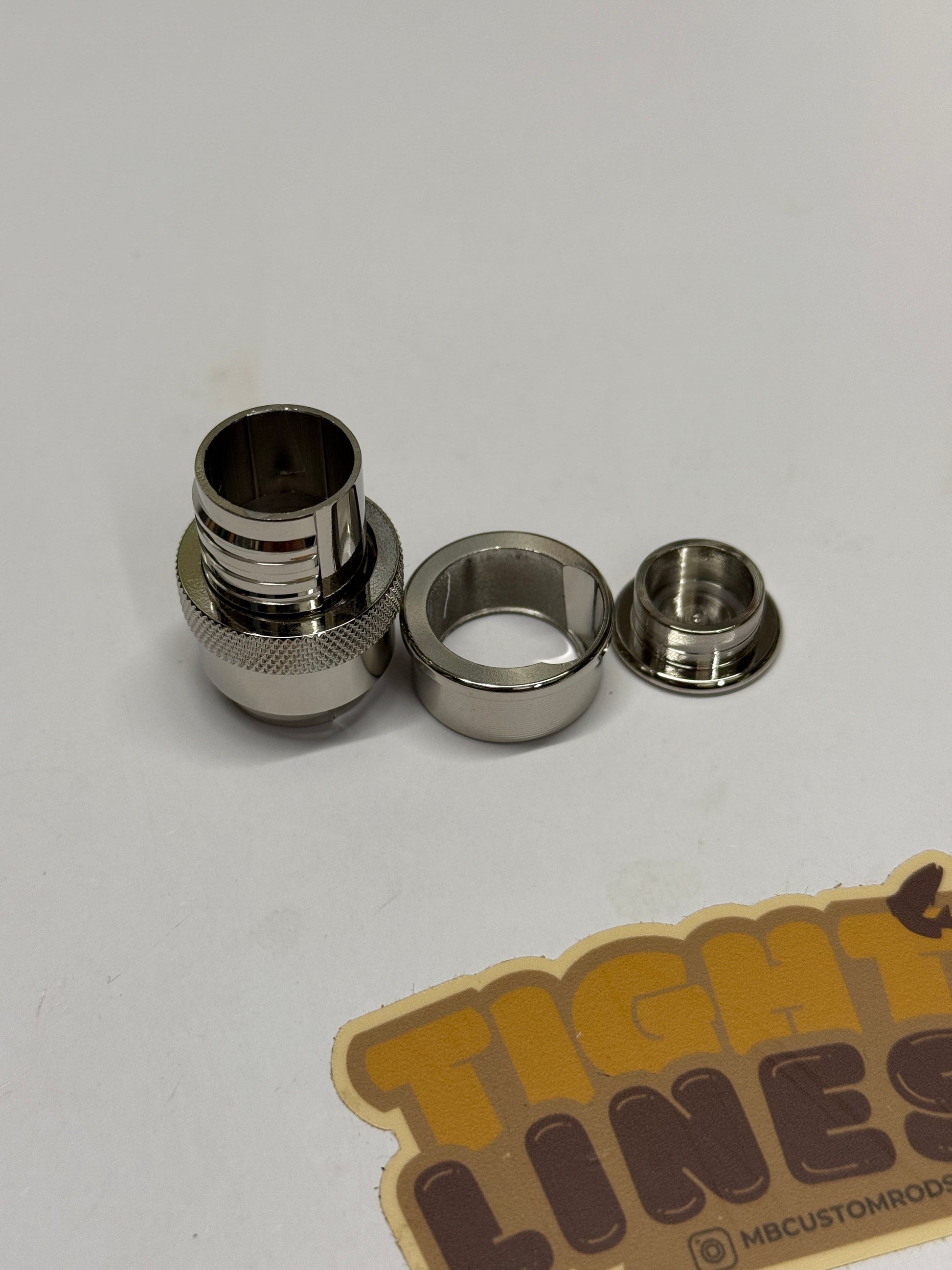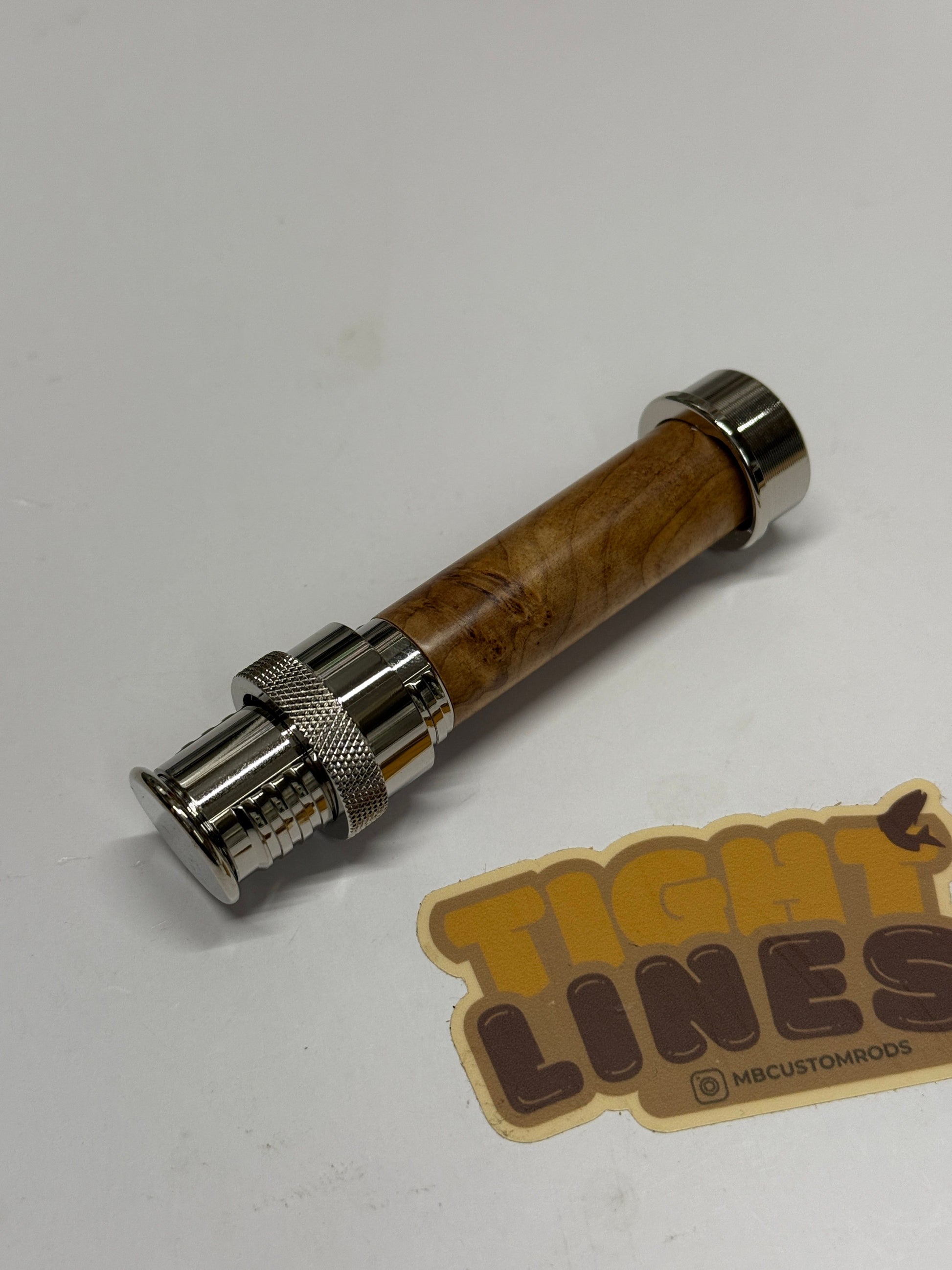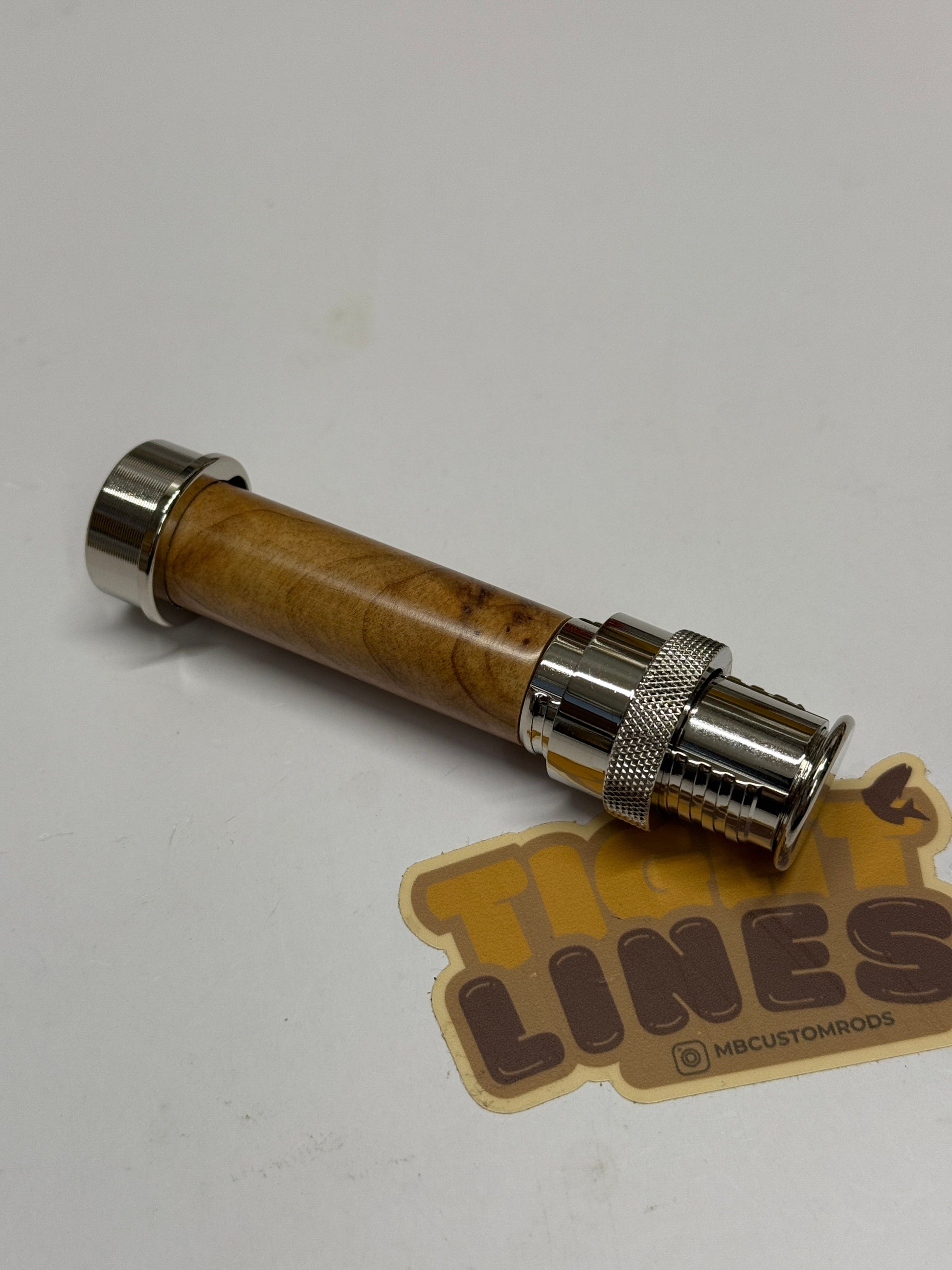 The Payne-style up-locking reel seat is made of nickel-plated 6061 aluminum and looks beautiful on classic fiberglass rods as well as on Carbon rods.