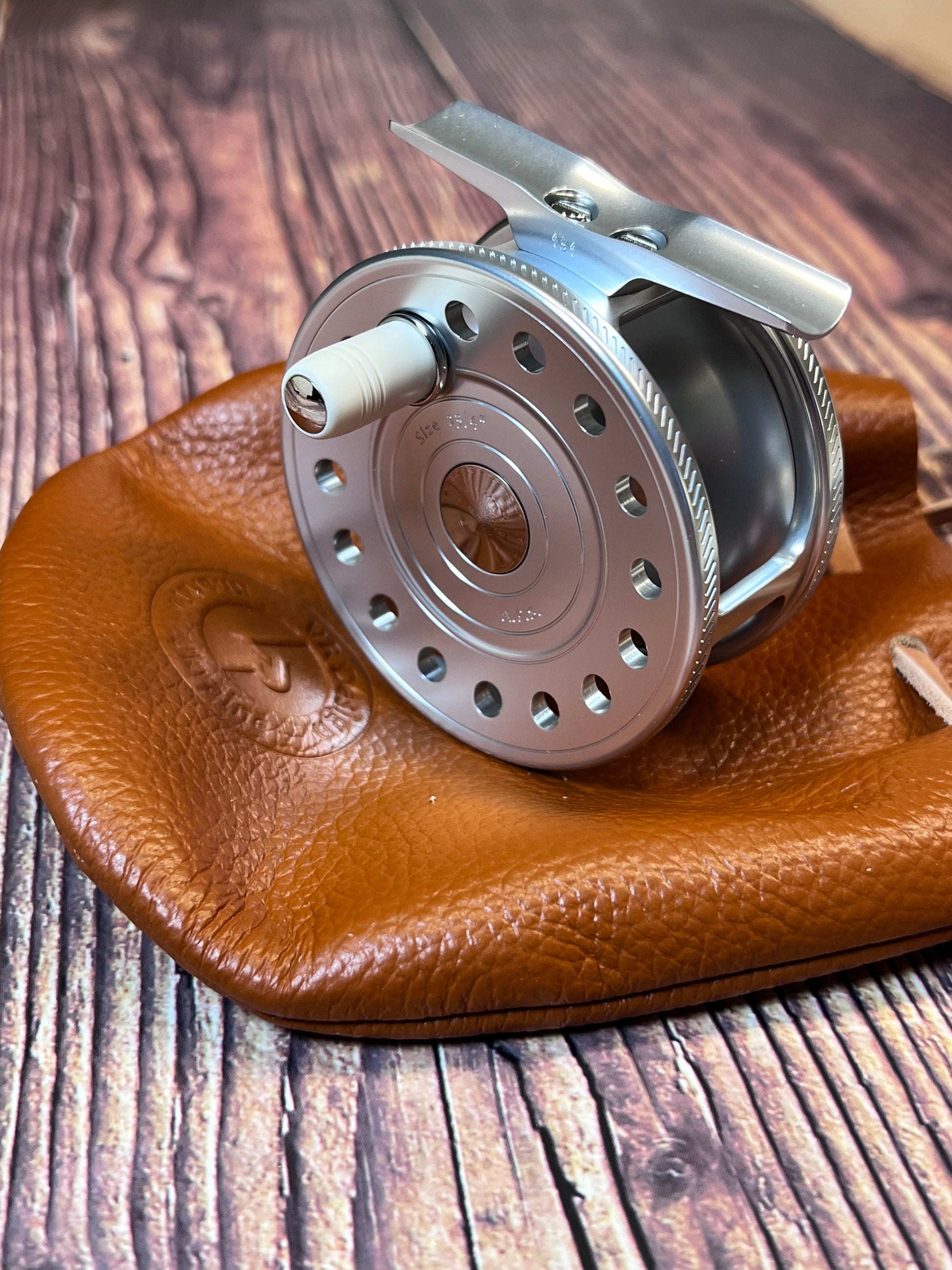 VR Reels Trutta perfetta 2 3/4" - silver with aluminum reel foot and white knob