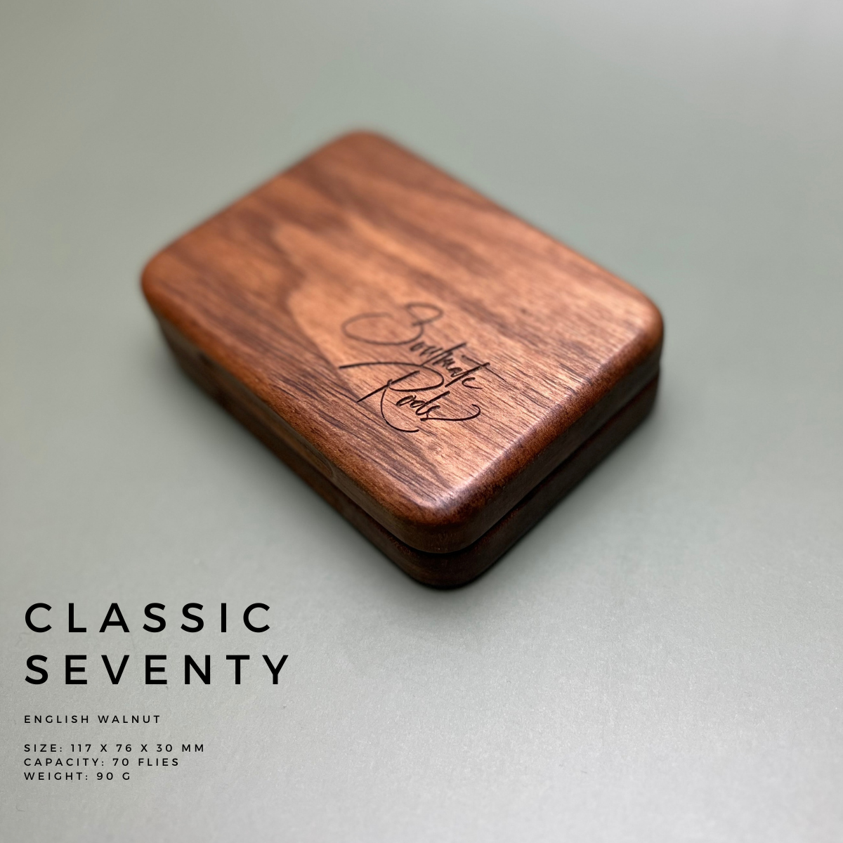 The Soulmate Premium Classic 70 Fly Box is made from the finest solid English walnut. This medium-sized fly box is suitable as an all-round fly box for all types of small to medium flies, whether dry flies, wet flies, or nymphs. Thanks to its compact dimensions, it fits into any standard fly vest. This fly box features 70 micro-slots for secure storage.