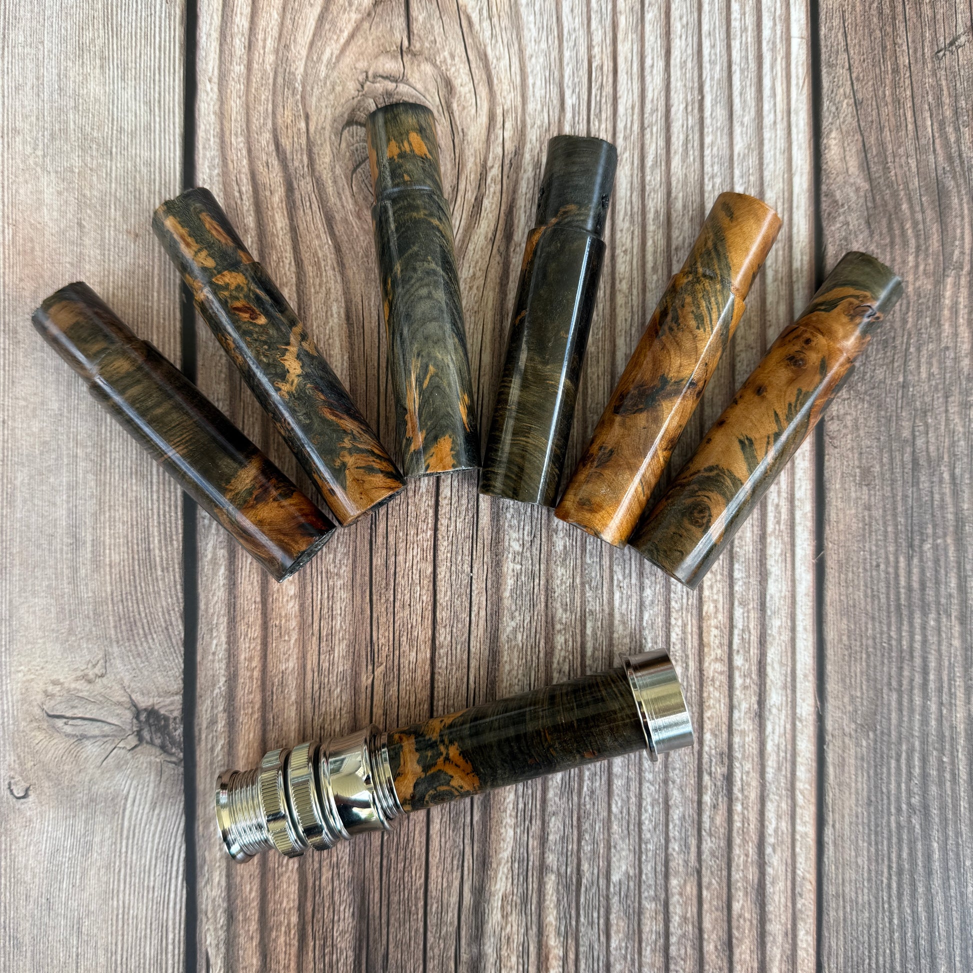 Bois de loupe teint, stabilisé et poli