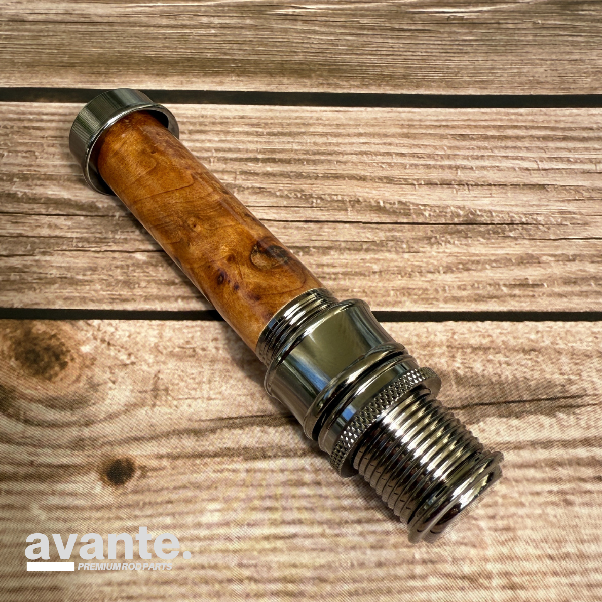 Porte-moulinet uplock très élégant pour cannes de classe 3-5 avec entretoise en bois précieux et embout chromé.