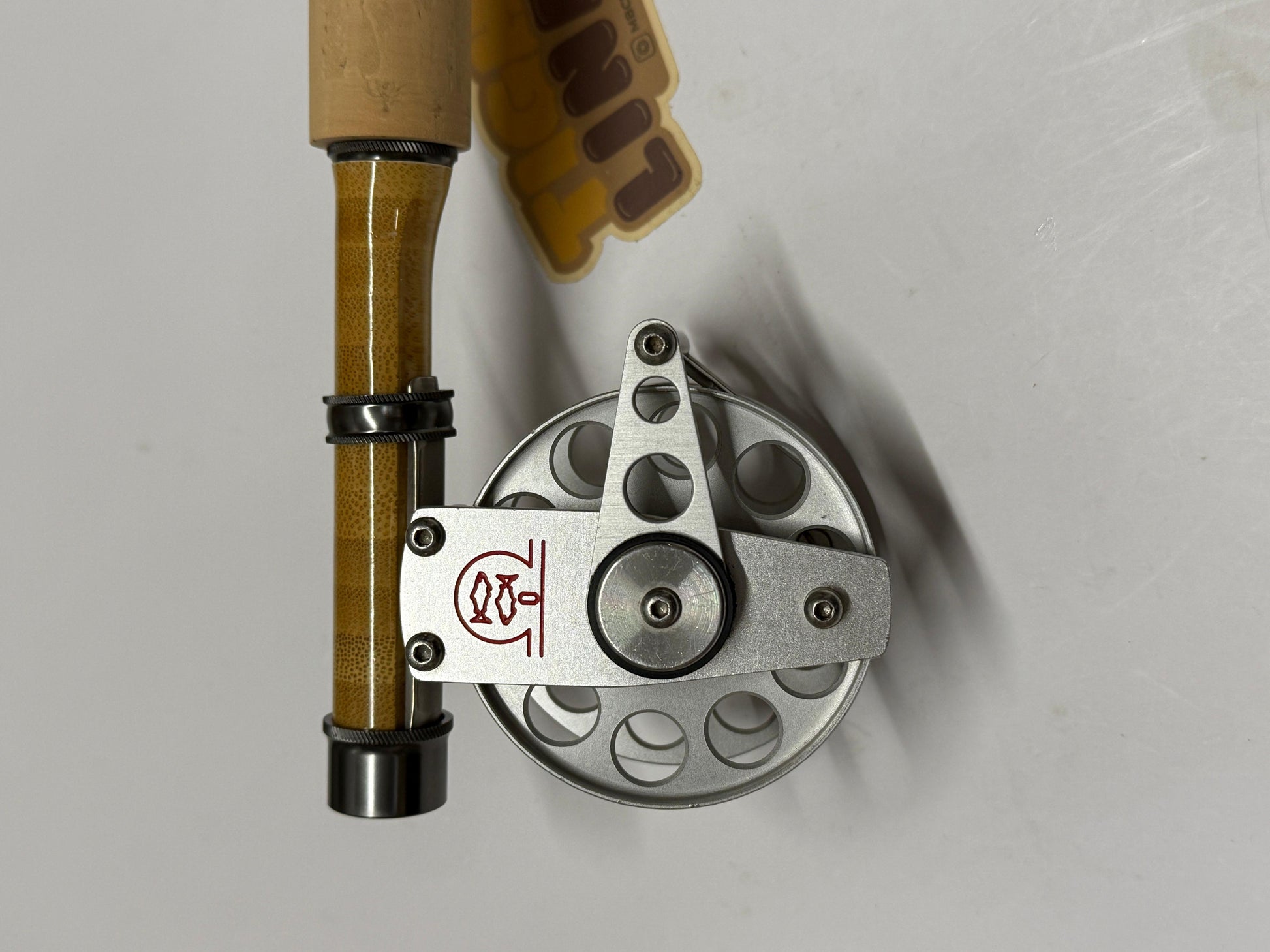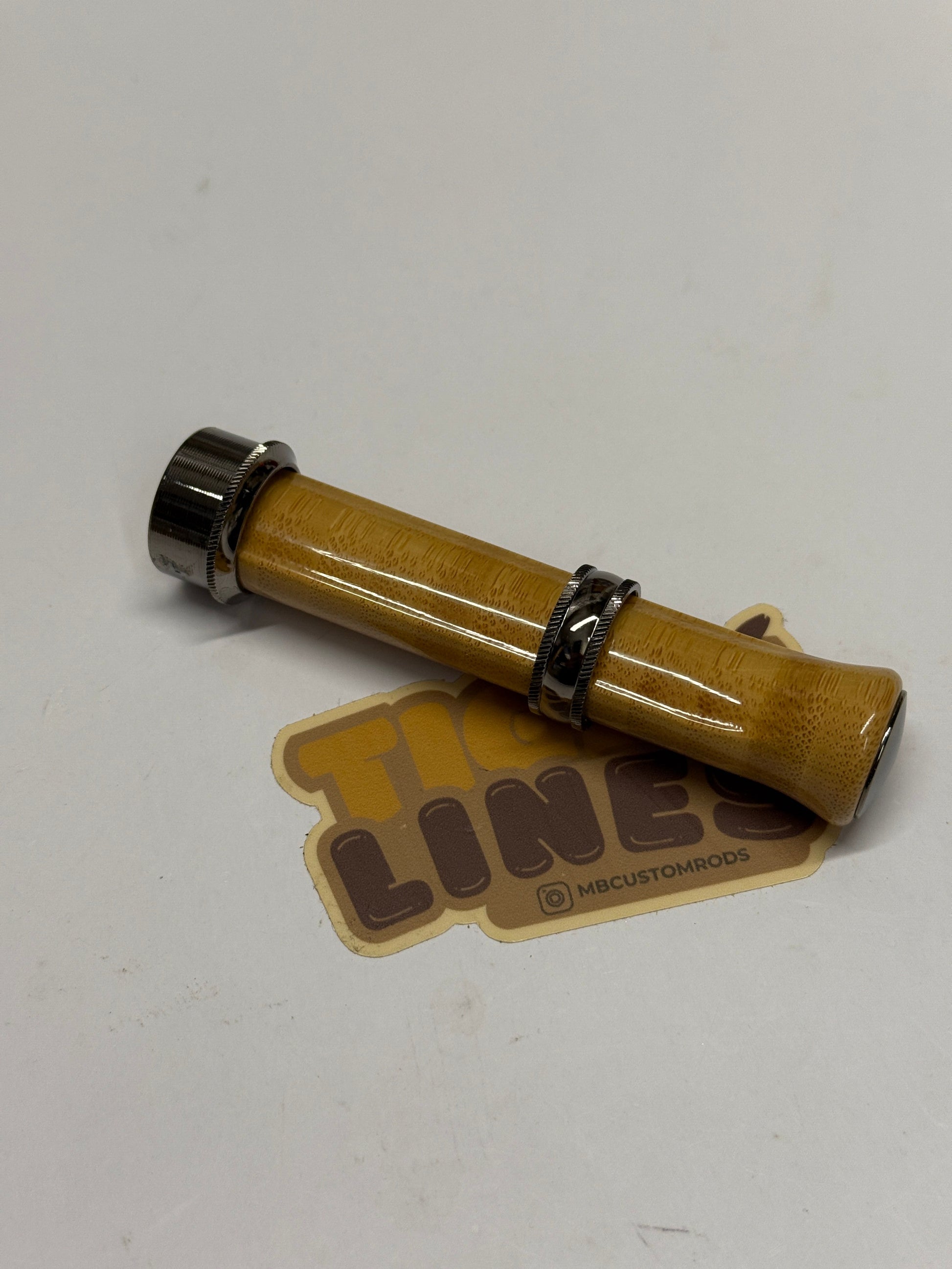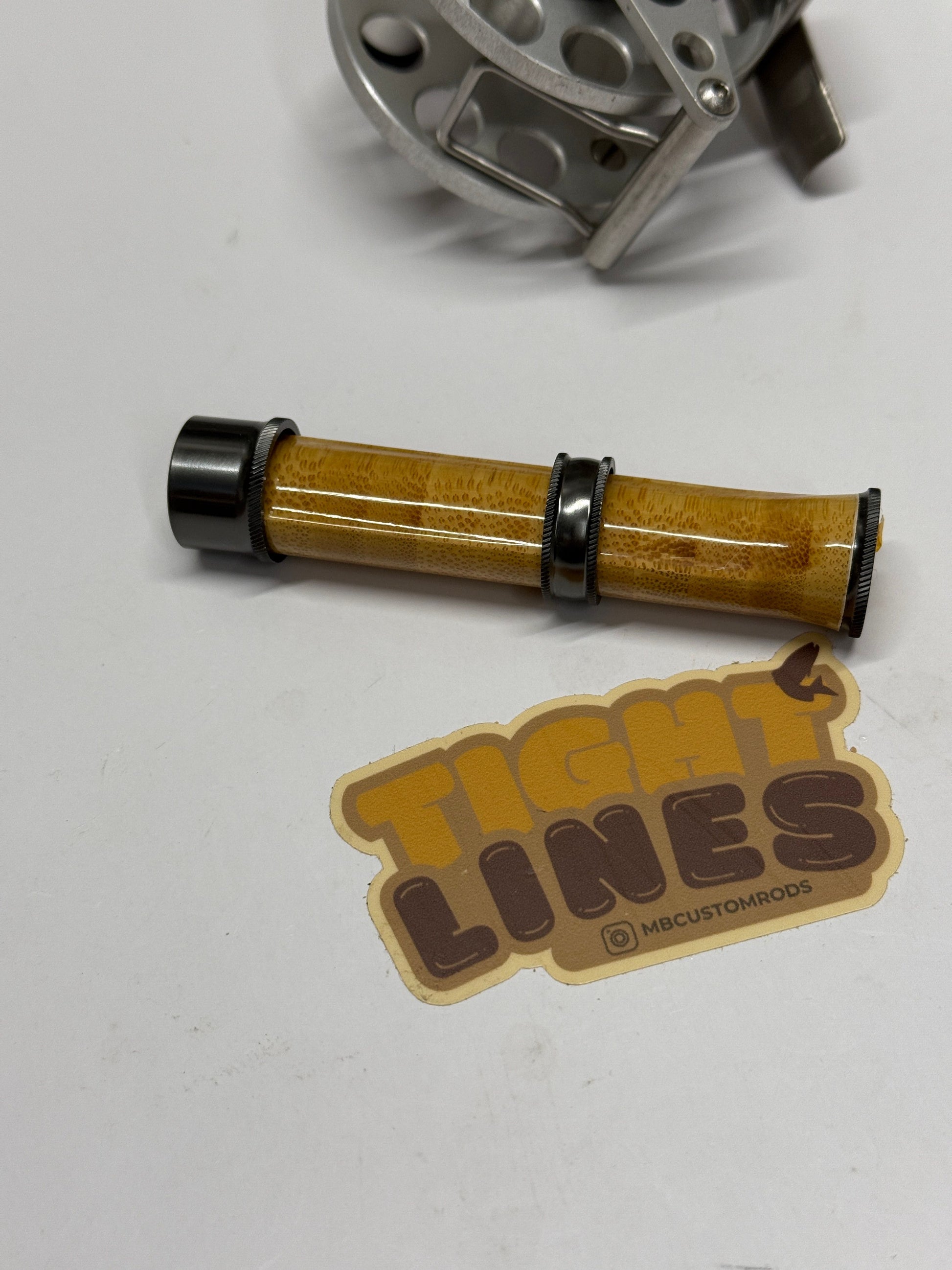 Porte-moulinet très élégant, minimaliste et léger pour cannes de classe 0-4 avec insert en bambou fraisé et poli. La quincaillerie est en aluminium 6061 anodisé.