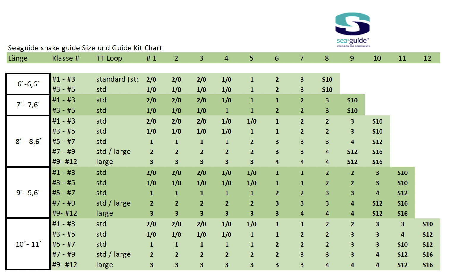 Ensemble d'anneaux Seaguide SG adapté à la classe et à la longueur de canne respectives au choix. Les guides de dénudage sont inclus et n'ont pas besoin d'être commandés séparément.