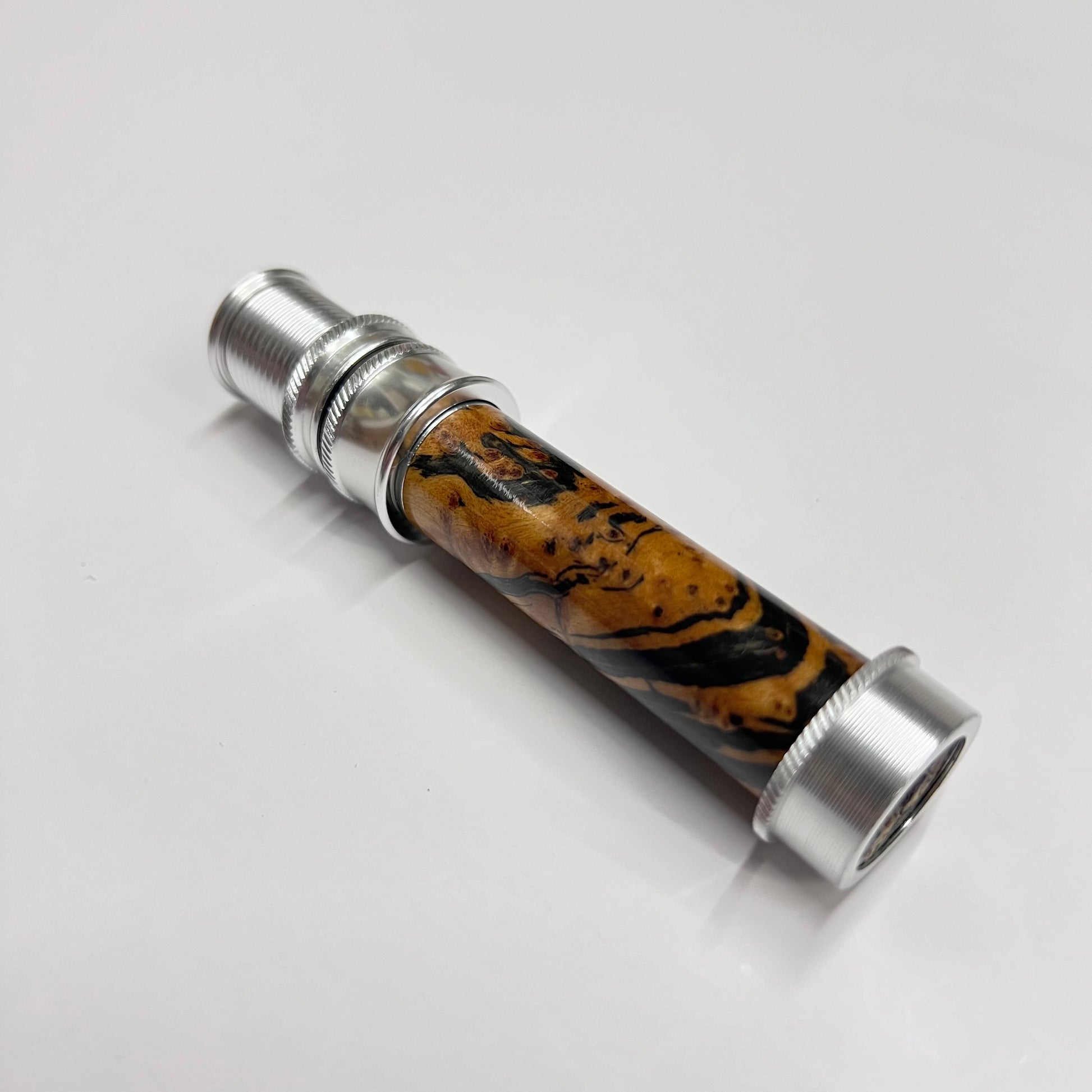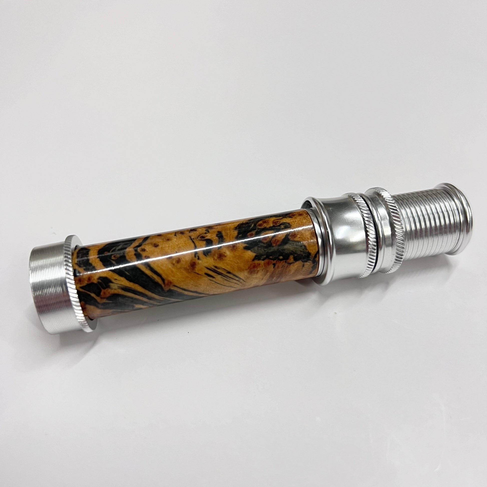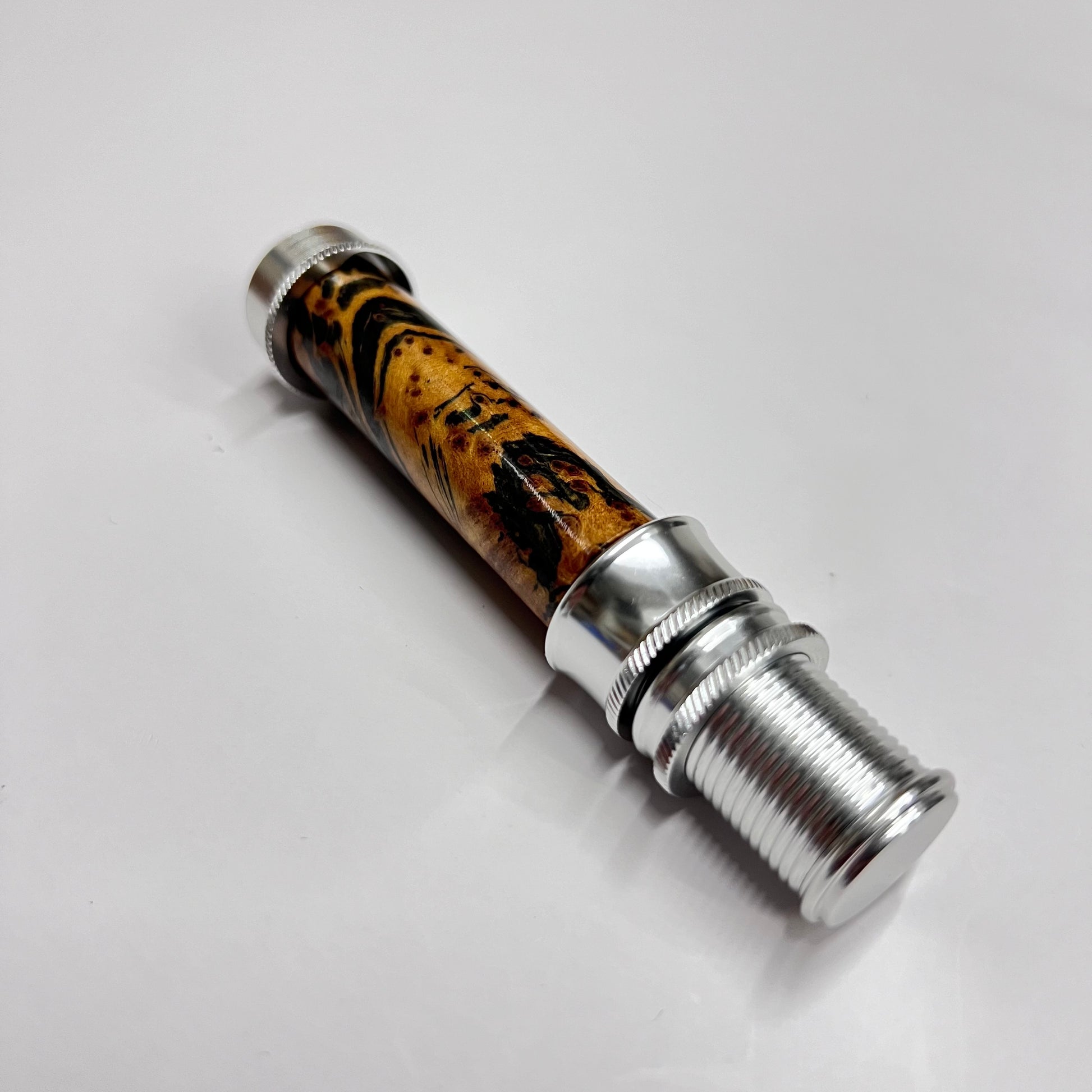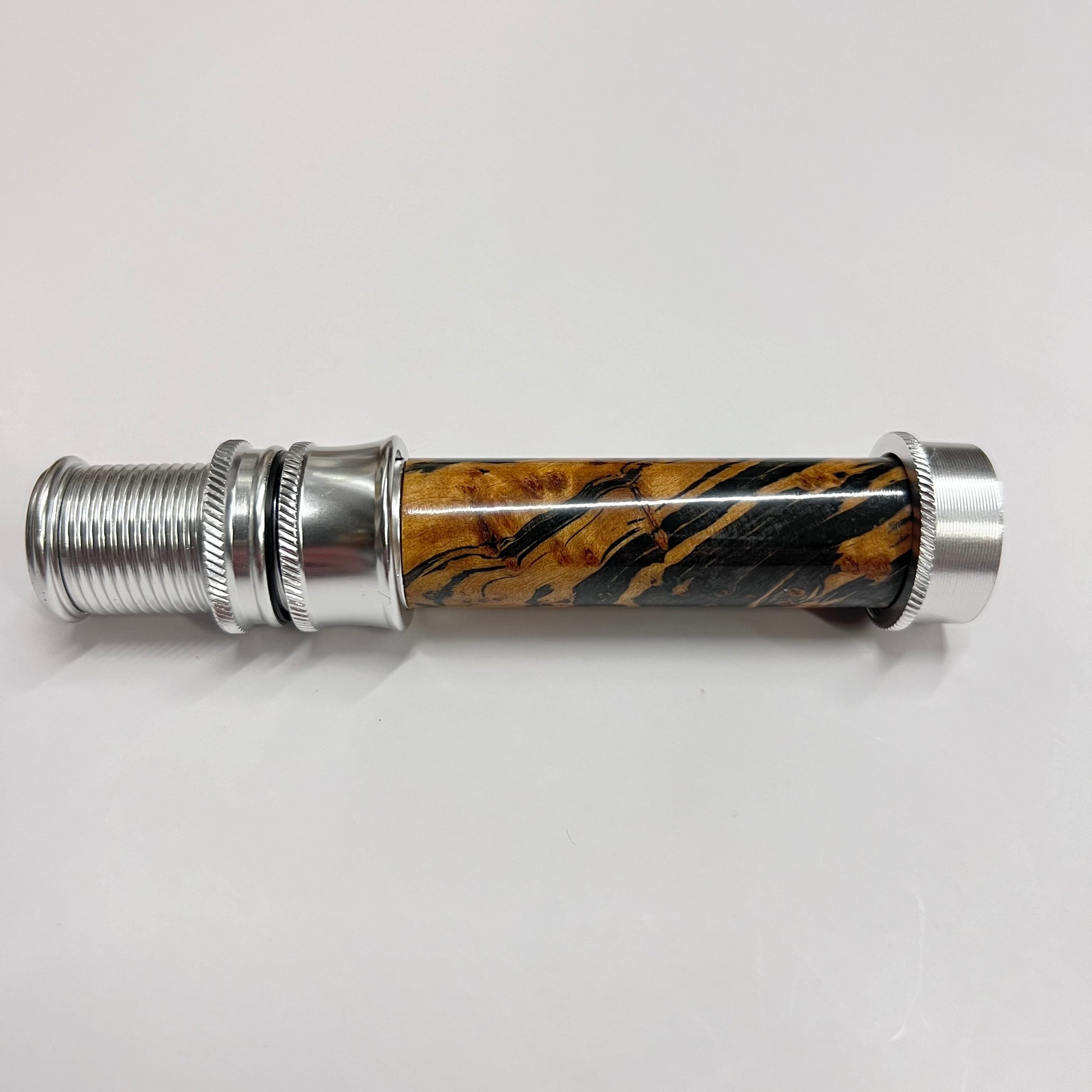 Wunderschöner Avante Studio Parts Rollenhalter aus Aluminium in Uplock Variation inkl. einem Custom Insert aus stabilisiertem und gefärbtem Maserholz.
