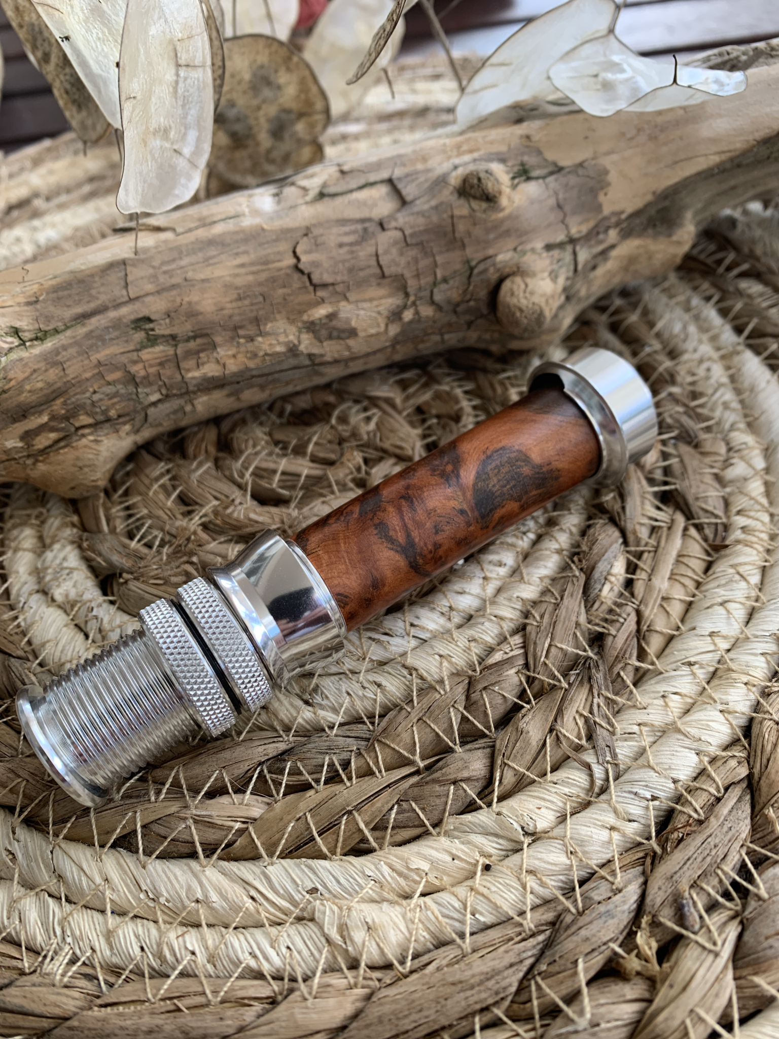 Geschwungene Kanten und fliessende Übergänge im Design machen diesen Rollenhalter zum Hingucker auf jeder Rute.