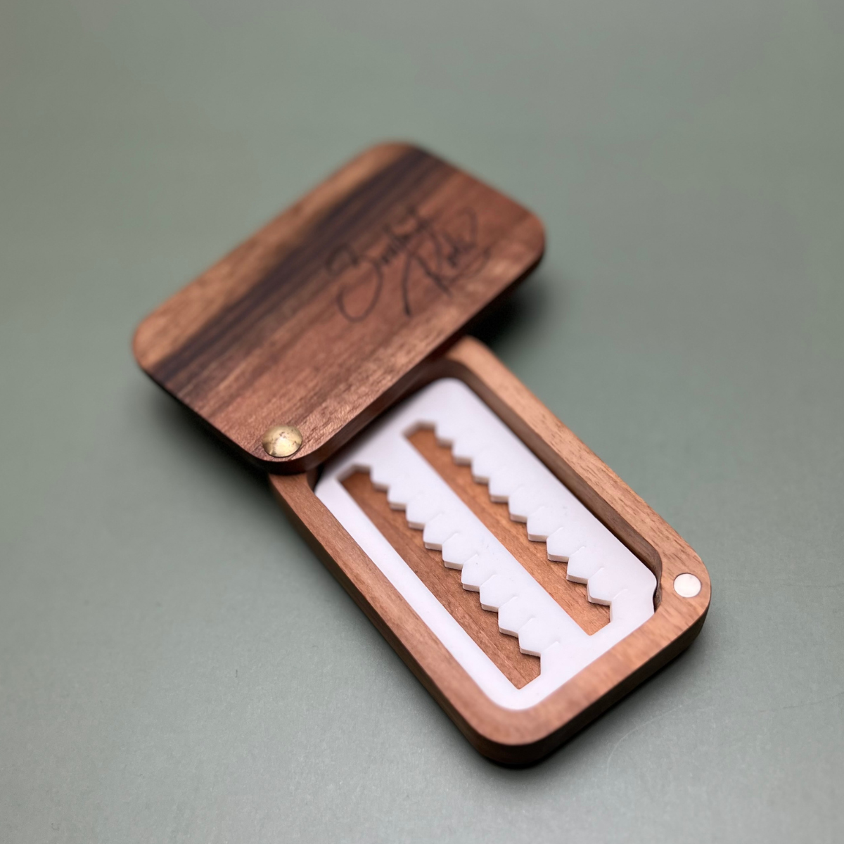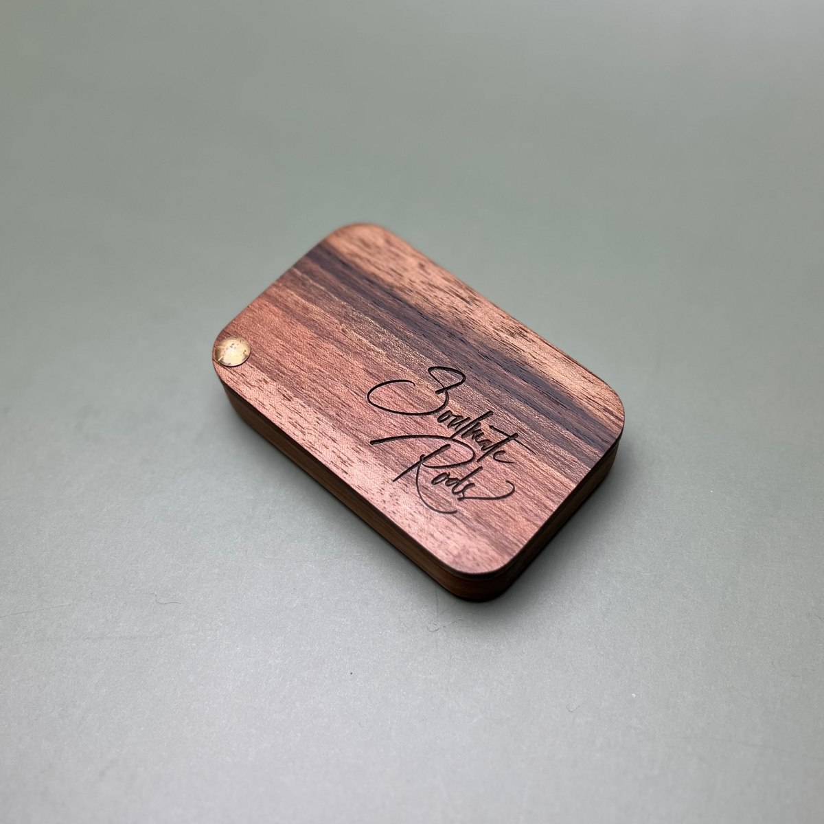 Die Soulmate Premium-Fliegendose Small Stream 20 besteht aus bestem massiven englischen Nussholz.